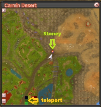 To begin, make your way over to Stoney, an NPC on the Event Continent. You can find him on any channel by teleporting (default hotkey: V) to the Event Continent, and following the path northeast until you reach the desert.