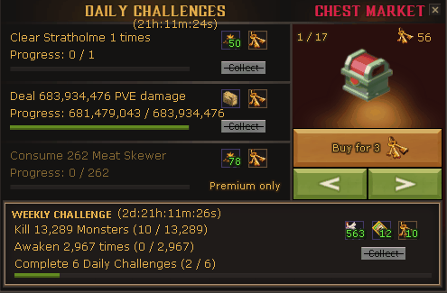 If you have Scroll of Premium active, you can also buy Premium chests, which cost less Challenge Keys and have slightly improved rates for rare items.