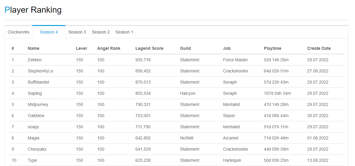 On the Season server, Legend Score determines which tier rewards you get, with higher Legend Scores netting you rare and unique fashion.