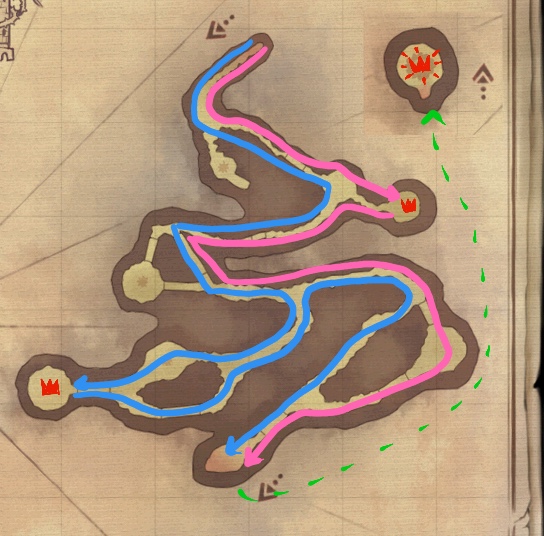 In a two route clear, it's very easy to full-clear the dungeon, and the routes shown below illustrate how to easily cover all enemy spawns.