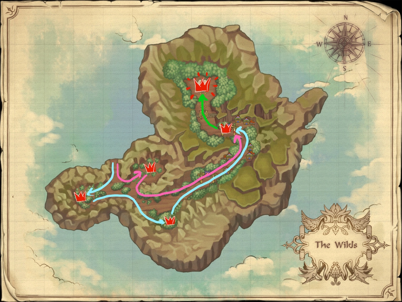 The two route clear of Savage Wilds splits the party up at the first fork, with one side clearing all the totems on the left, and the other clearing all the totems on the right. Both groups will meet up at the boss.