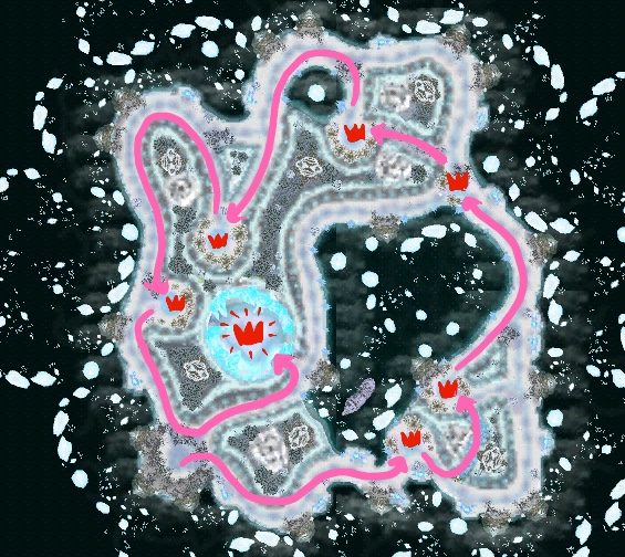 The one route clear of Snowy Peaks simply runs a counter-clockwise lap around the map, clearing totems along the way. You can alternatively clear the dungeon clockwise, and there's no obvious benefit to one over the other.