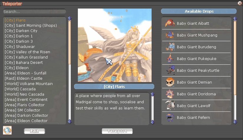 CW Flyff uses a Teleporter system for getting around and entering dungeons. All you can do is press "V" (default hotkey), or go to Start --> Features --> Teleporter.