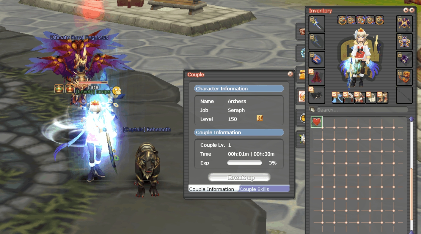 To restore your couple level to a new couple, make sure the character using the scroll is currently in a couple. Then, simply double click the Scroll of Couple Level Restore, and your couple level will be immediately transferred!