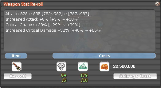 Please check both the item you're salvaging in addition to the type of dust you're receiving before salvaging a weapon! The type of dust must match in order to re-roll a weapon.