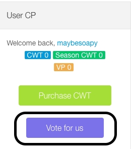 Voting not only helps CW Flyff, you also receive 100 VP every day you vote! VP can accumulate indefinitely on your account, and is shared between characters on that account. Additionally, VP is usable on both the Season and main (Clockworks) servers!