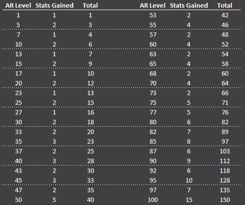 Stats per Angel Rank